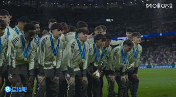 西甲第33轮皇马迎战阿拉维斯赛前,荣获青年欧冠的皇马U19球队带着奖杯来到伯纳乌,全体主力球员整齐列队以示敬意。