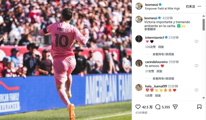 迈阿密国际胜利!梅西社交动态:热烈气氛下的重要战果