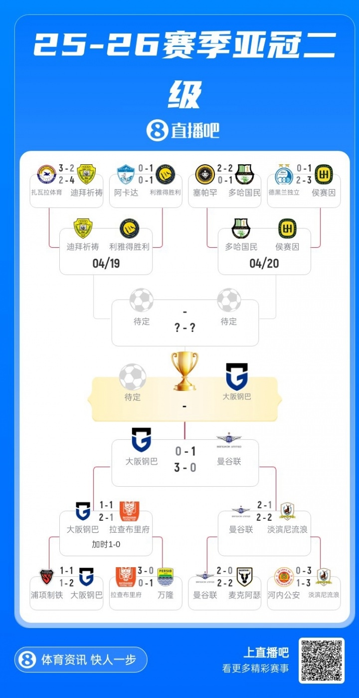亚冠精英联赛半决赛结果揭晓,两支J联赛球队——神户胜利船与町田泽维亚携手晋级四强。町田泽维亚以8战17分的战绩领跑东亚区,神户胜利船紧随其后积16分。神户胜利船点球淘汰多哈萨德,町田泽维亚则小胜吉达联合。本届亚冠决赛阶段将在沙特吉达进行,两支队伍的交锋将决定冠军归属。在二级联赛中,大阪钢巴与利雅得胜利均为全胜,两强将争夺决赛资格。