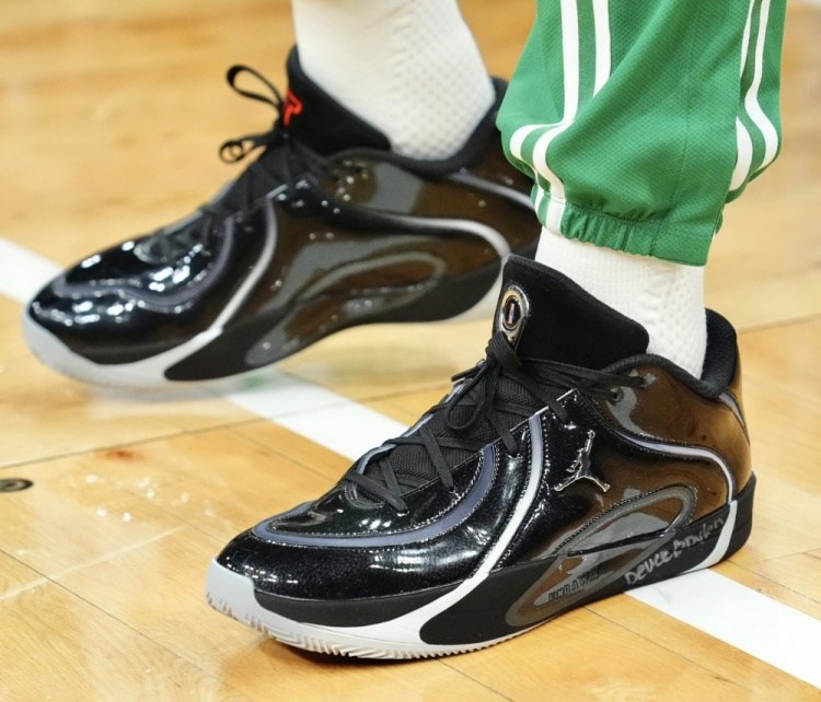 篮球资讯4月20日:凯尔特人主场首战告捷,塔图姆在比赛中穿着特别设计的Tatum 4 PE球鞋。该鞋款以1966年福特野马为设计蓝本,这一配色方案在他的AJ联名限量系列中也有应用,彰显其独特风格。
