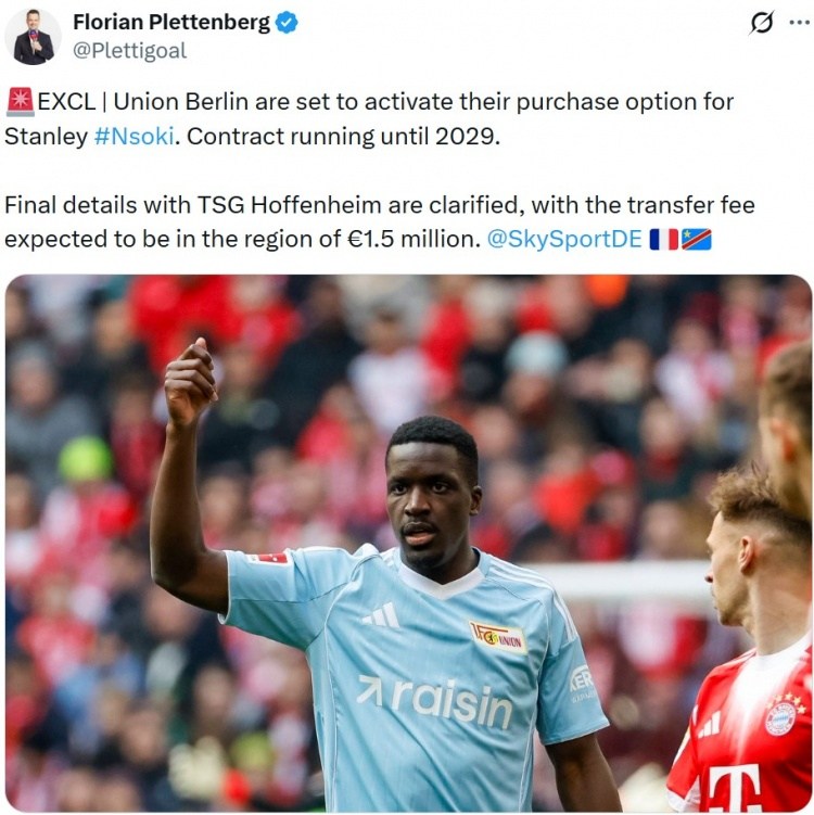 体育快讯4月19日:据德甲媒体Florian Plettenberg透露,柏林联合正式准备启动斯坦利·恩索基的买断机制,双方将达成一份持续至2029年的合同。报道指出,俱乐部与霍芬海姆的转会谈判已最终完成,预计支付约150万欧元的转会费。这位27岁的后卫在本赛季德甲中已出场12次,取得1球2助攻的成绩。