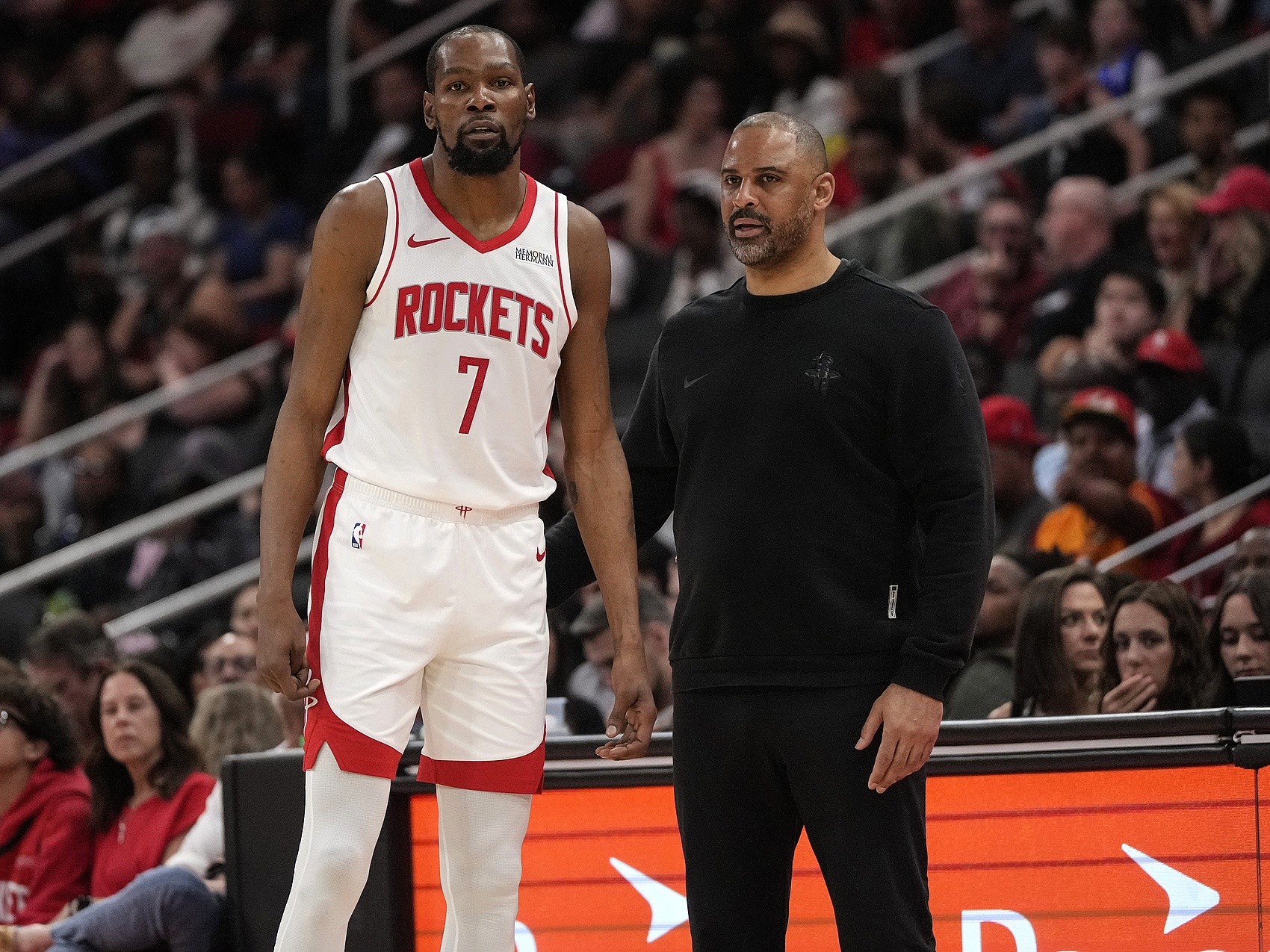 体育新闻4月19日:西部季后赛首轮G1,火箭客场98-107负于湖人,大比分0-1落后。赛后乌度卡谈凯文·杜兰特赛前突发伤情。 问:KD临场无法出战,调整轮换阵容难度多大?你昨晚才得知消息,摸索各种组合难度如何? 乌度卡:这不是意外。我们早就知道他伤情,并针对KD缺阵演练过多种阵容。他若能上场最好,但目前状态不佳,我们已准备好后备方案,包括无KD的轮换阵容及替补首发人选。所以对球迷来说看似临时,实则我们早有准备。