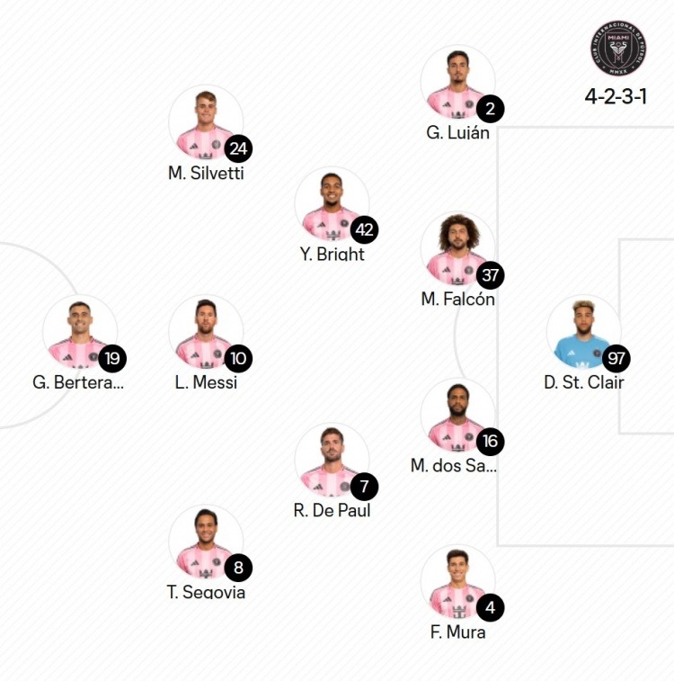 体育快讯4月19日,美职联第8轮,迈阿密国际客场对阵科罗拉多急流,官方首发阵容:97号圣克莱尔、4号穆拉、16号米凯尔、37号法尔肯、2号卢安、7号德保罗、42号布莱特、8号塞戈维亚、10号梅西、24号西尔维蒂、19号贝尔特拉梅。替补:34号诺沃、32号阿伦、76号阿巴迪亚·雷达、17号伊安·弗雷、21号阿连德、41号鲁伊斯、88号亚历山大·肖、56号平特、9号苏亚雷斯。