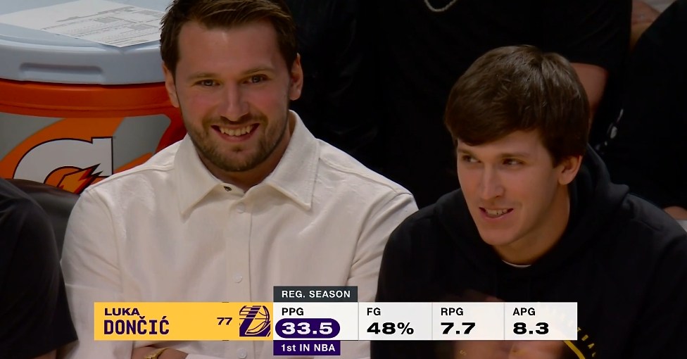 在这场激烈的比赛中,41岁的勒布朗·詹姆斯犹如神助,场上表现堪称逆转天罡。他不断撕裂对手防线,攻防两端都展现出惊人状态,让全场观众热血沸腾。而场边,东里则悠闲自得地与队友说笑,享受着比赛带来的轻松氛围。这张照片完美记录了这一幕:詹姆斯在场上大杀特杀,东里在场边谈笑风生。