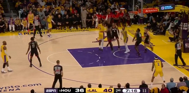 斯玛特以惊人的爆发力突袭谢泼德,随后一记刁钻的后场传球助攻艾顿,后者轻松将球篮上空抛投命中。