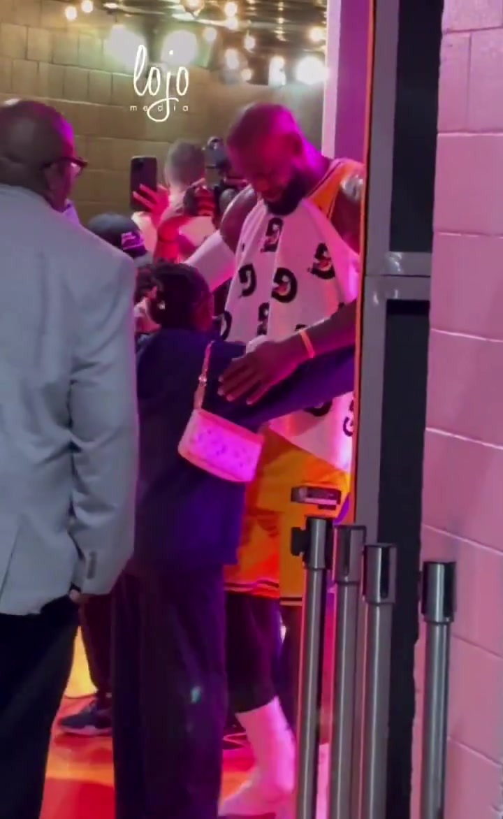 勒布朗赛后温情一幕:父女相拥 毛巾隔汗显细心