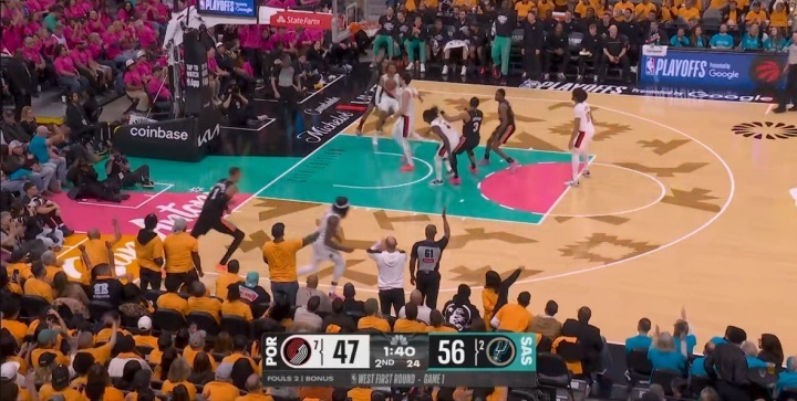 文班先用他的魔术般的技巧让比赛变得精彩纷呈:他先是隔开两人完成传球,然后以一个华丽的大漂移三分球展示了他的非凡实力。
