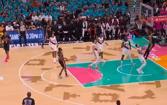 文班凭借惊人弹跳,试图完成顶部扣篮,可惜球被扣飞,虽败犹荣,令人印象深刻!