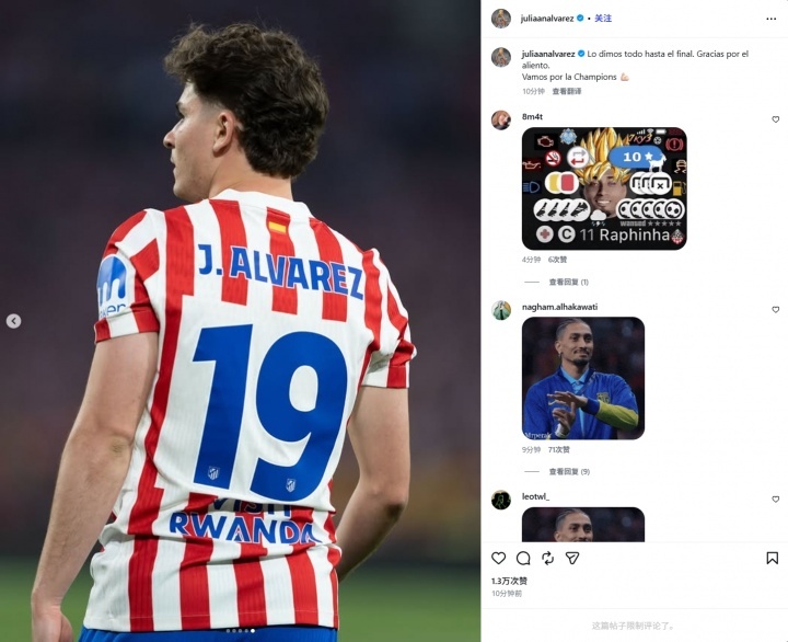 马竞在国王杯决赛中惜败皇家社会,阿尔瓦雷斯打入关键进球但点球失手。赛后,他通过社交媒体表示,球队已倾尽全力,感谢球迷支持,并宣布将全力备战即将到来的欧冠比赛。4月30日,马竞将在主场迎战阿森纳。