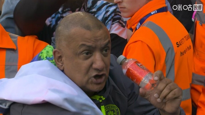 直播画面再捕捉:曼城球迷水瓶哥又现身影