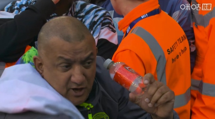 英超第33轮赛事落下帷幕,曼城以2-1力克阿森纳。赛后,转播团队再次镜头聚焦上轮引起热议的曼城球迷“水瓶哥”,他手持带有阿森纳标志的水瓶,为球队胜利而欢呼雀跃。