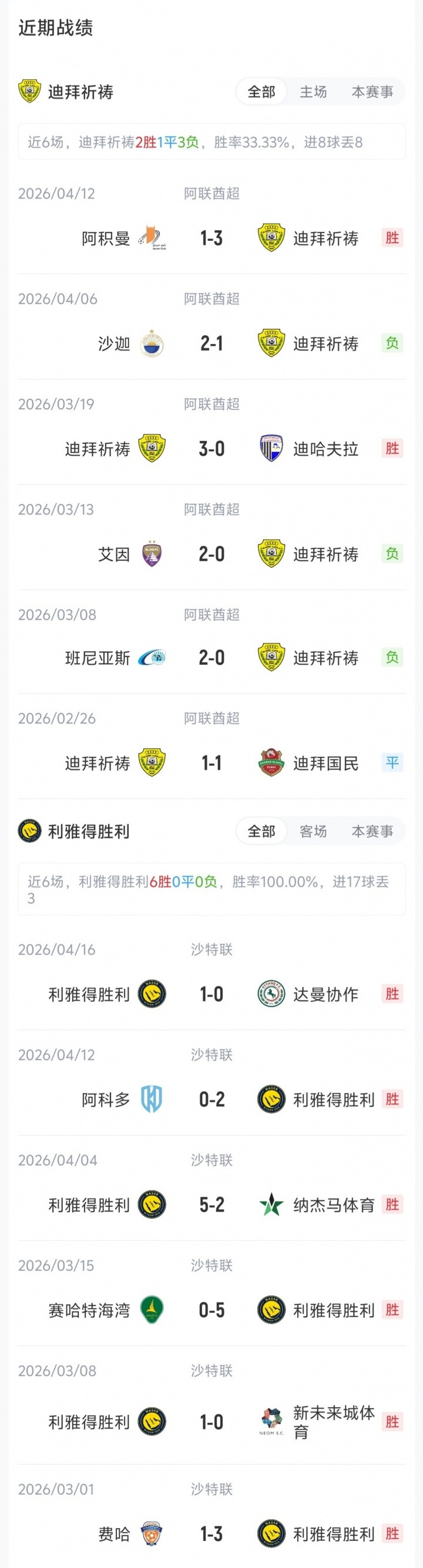 最新体育快讯04月19日:亚冠二级1/4决赛即将上演,利雅得胜利将在客场挑战迪拜祈祷。这场单场淘汰制的激烈对决,双方首发阵容已尘埃落定。