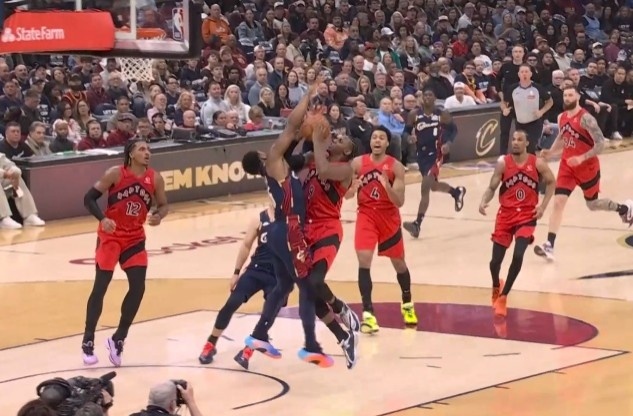 米切尔面部被巴雷特击中后倒地,裁判作出防守犯规判罚,骑士队的挑战因此失败。