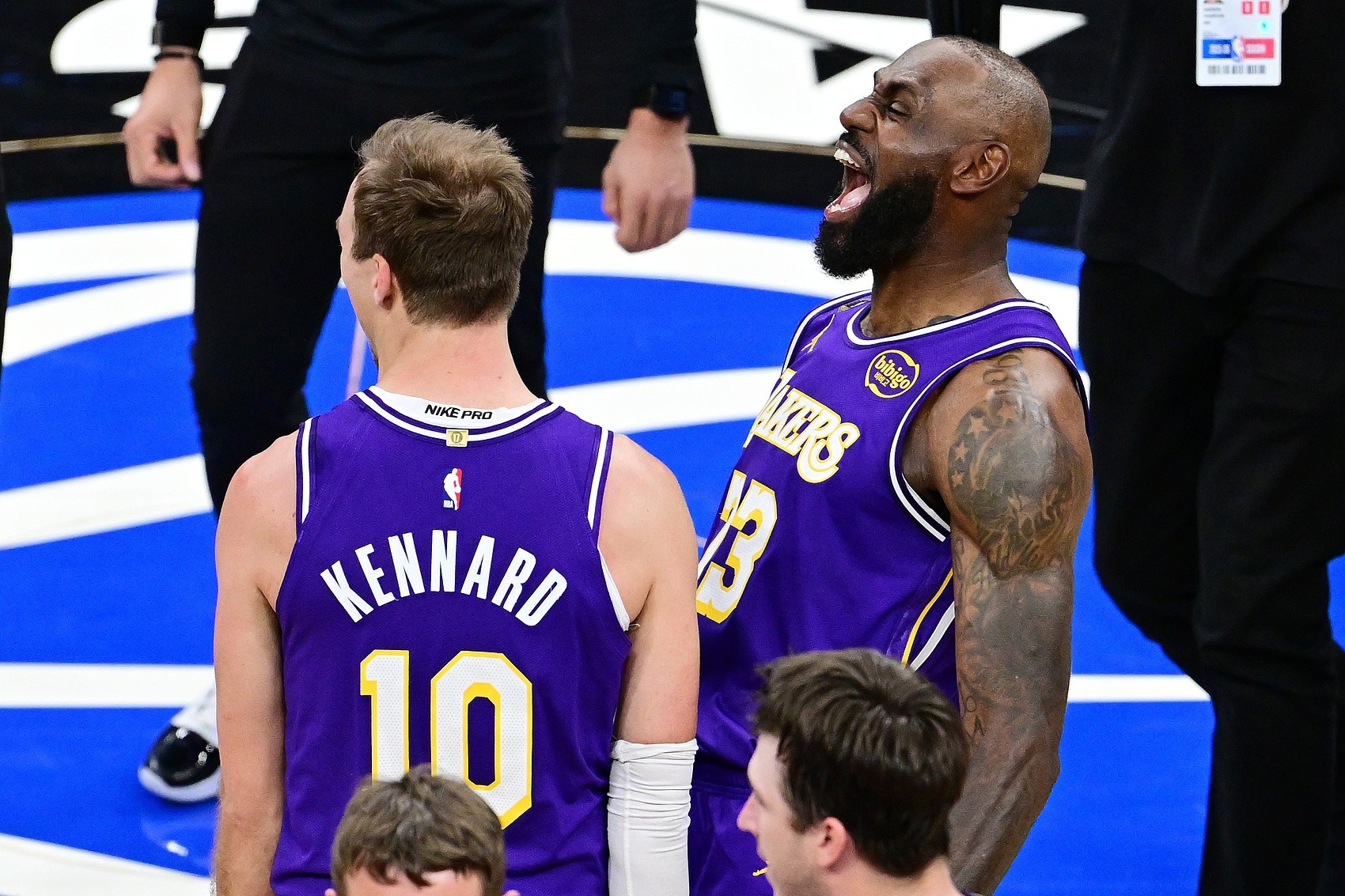 湖人首发五虎:詹姆斯坐镇后场,八村塁、艾顿、斯玛特、肯纳德首发并肩作战。