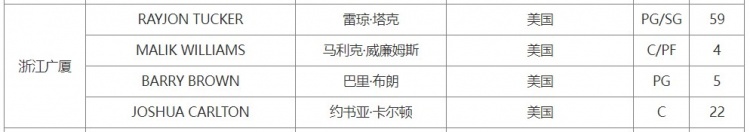 4月19日,CBA官网最新公布的外援注册更新显示,广厦男篮决定重新启用雷琼·塔克,并终止了贾卡尔·桑普森的注册资格。此次调整后,广厦队的四外援组合更新为塔克、马利克·威廉姆斯、巴里·布朗和卡尔顿。