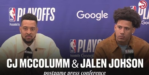 NBA季后赛东部首轮G1,老鹰102-113不敌尼克斯。赛后,杰伦·约翰逊和麦科勒姆接受采访,分享了比赛感受和球队表现。约翰逊表示比赛情况符合预期,麦科勒姆则指出失误和空间问题是改进点。两人均认为球队需要调整,为后续比赛做好准备。麦科勒姆还幽默回应布伦森的犯规判罚。