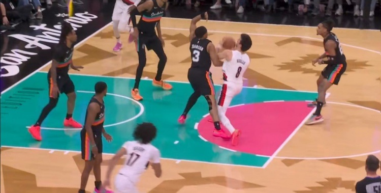 阿夫迪亚在激烈对抗中强行突破凯尔登防线,随后执行高难度后仰跳投命中,成功打成2+1精彩瞬间。
