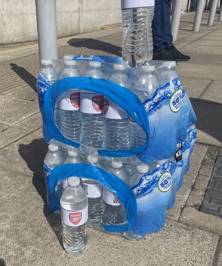球场外售卖阿森纳队徽矿泉水,曼城球迷行为引关注
