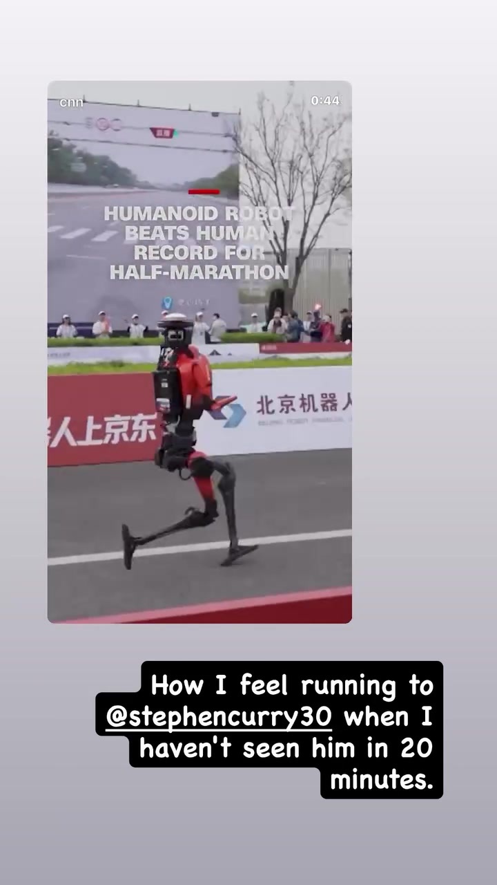 The wife of a basketball player shared a video showcasing her victory in a robot marathon. In just 20 minutes of separation from her husband, she had to sprint towards him with incredible speed.