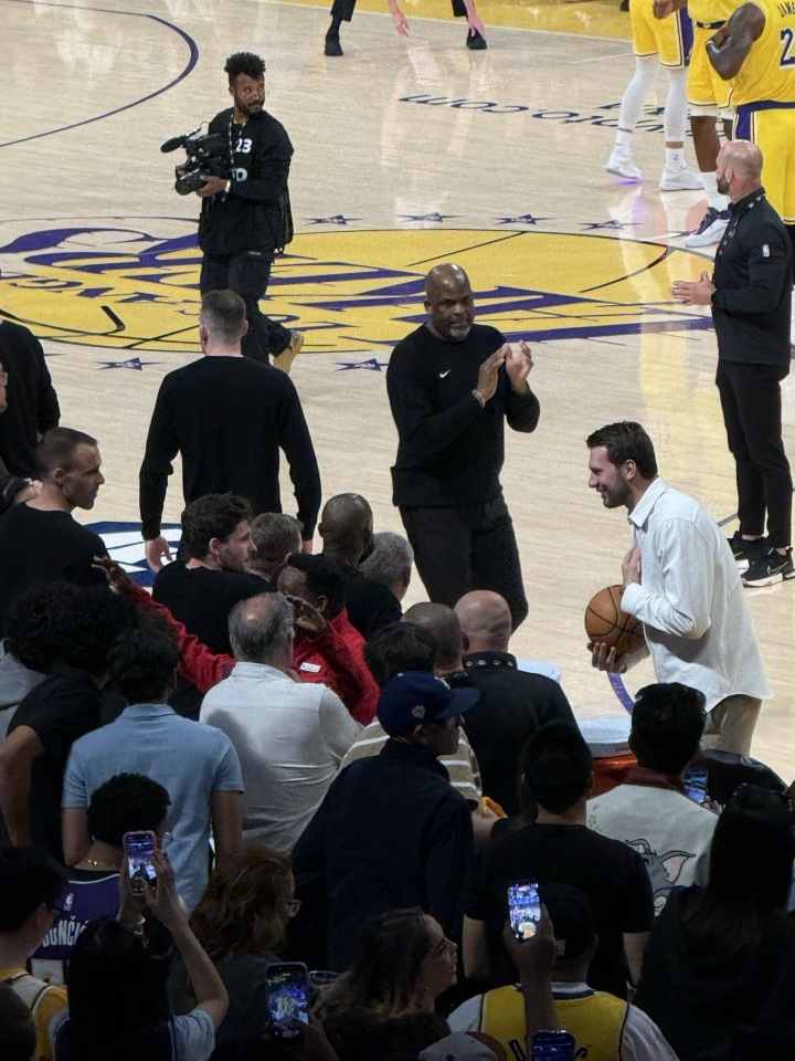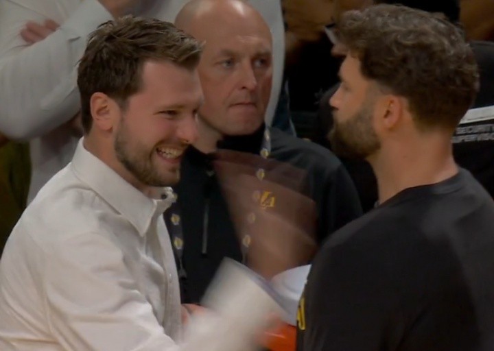 东契奇板凳席上热情互动 球场温情一幕