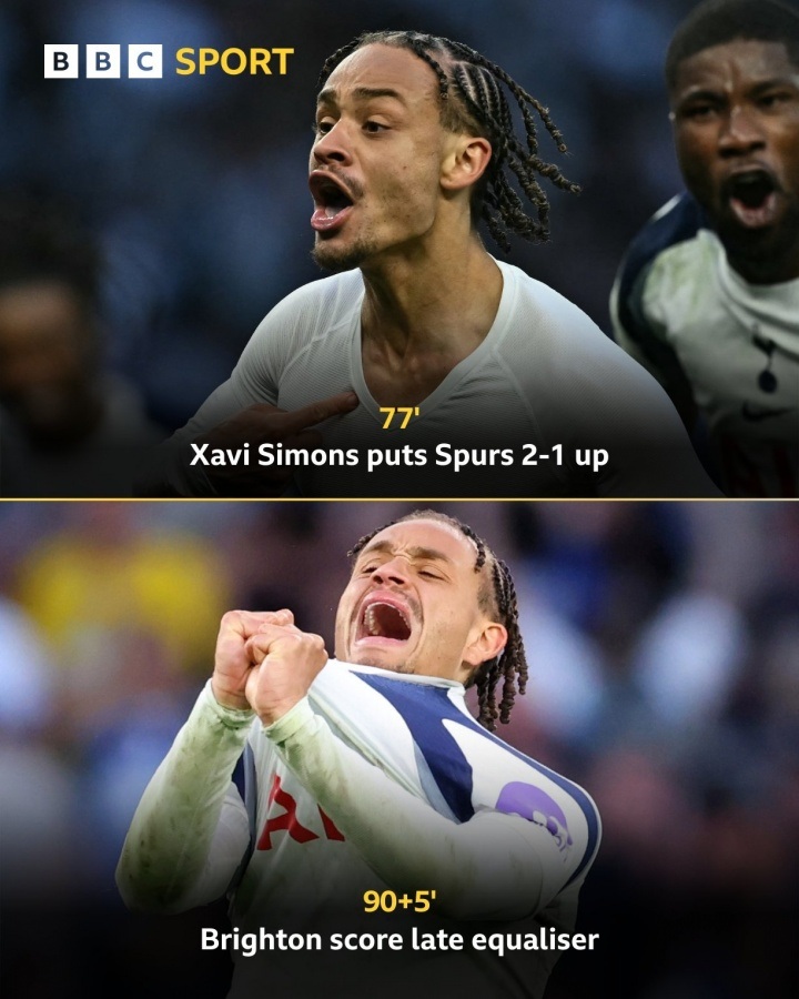 体育快讯04月19日:在热刺与布莱顿的激烈交锋中,鲁特尔率先破门,然而布莱顿在比赛末段第94分钟实现绝平。西蒙斯贡献了一记世界波和一次助攻,却因球队被逆转而情绪崩溃,落泪沮丧。此前,他在第77分钟的进球时曾兴奋脱衣庆祝。