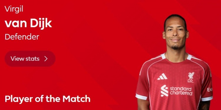 利物浦险胜埃弗顿,范戴克绝杀力压群雄获官方全场最佳