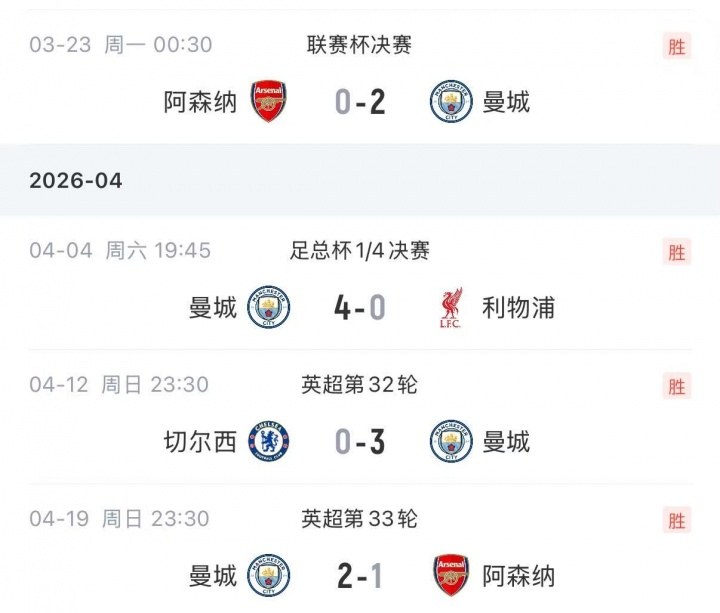 曼城双杀阿森纳,联赛杯加冕,积分榜仅落后3分