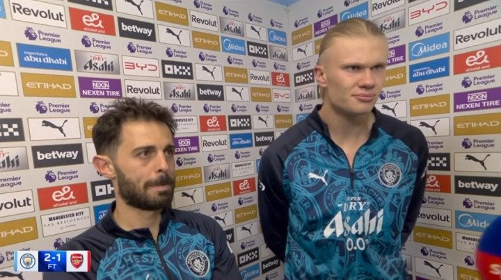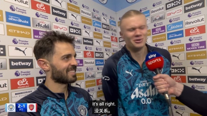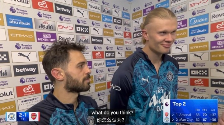 在曼城2-1险胜阿森纳的英超收官战中,哈兰德与即将离队的B席共同接受了采访。这场胜利让曼城有机会在补赛中反超阿森纳,意义非凡。