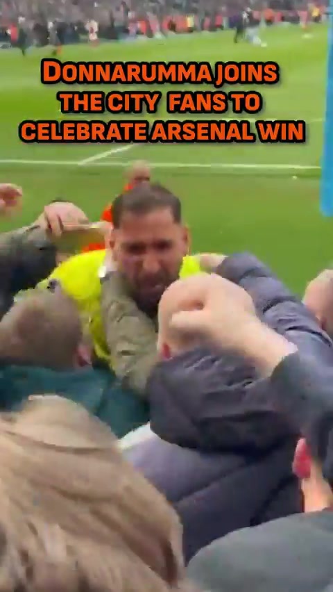伊蒂哈德球场沸腾!曼城第33轮联赛2-1战胜阿森纳,冠军形势骤然改变。多纳鲁马赛后迫不及待冲入看台,与球迷们一起分享胜利喜悦,场面十分热烈。