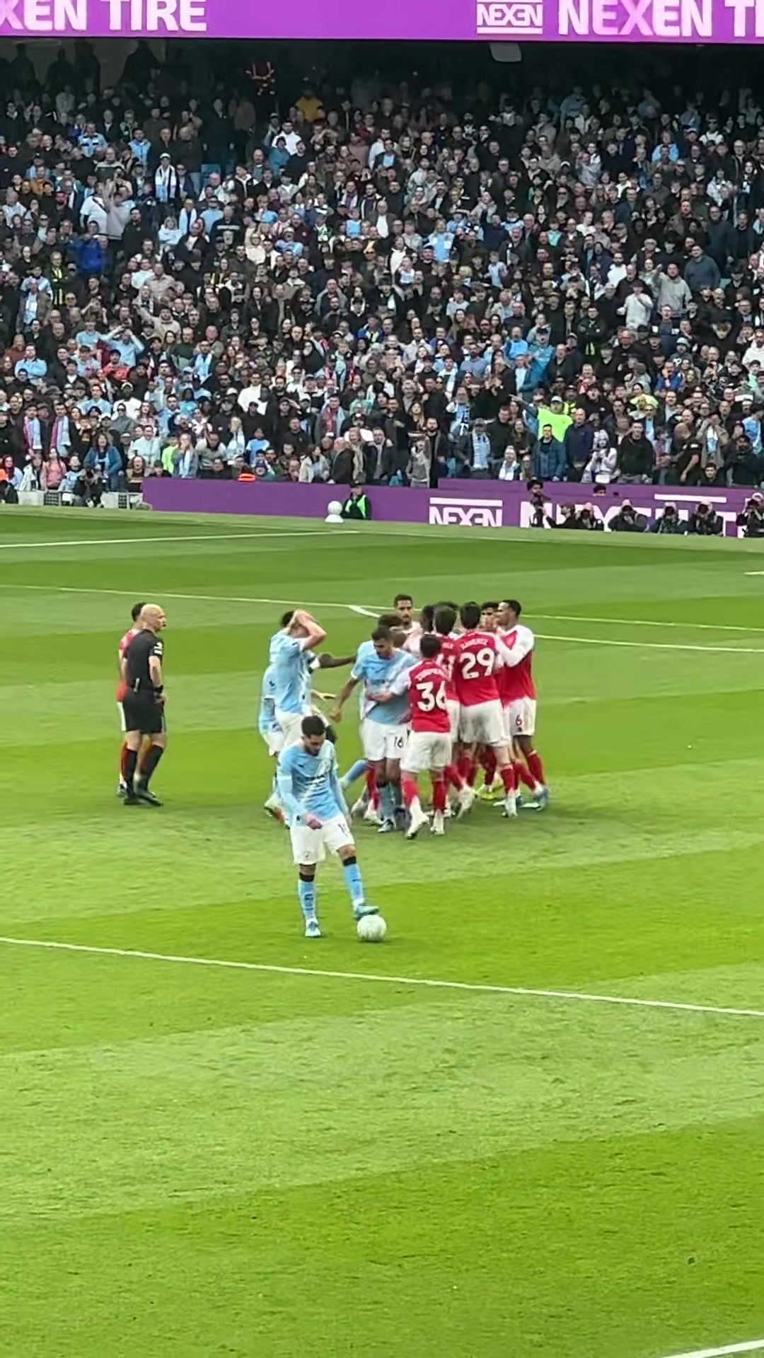 面对曼城枪手的激烈内讧,谢尔基选择在侧后方颠球,旁观事态发展。