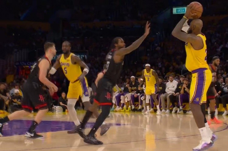 冷箭破网!詹姆斯弧顶三分建功 率队保持两位数领先