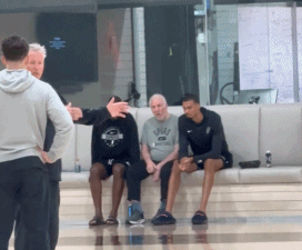 波波维奇马刺训练场显身手,文班亚马卡斯尔等球员热情互动