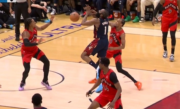 哈登单打独斗 造杀平局 取消了对手的犯规动作